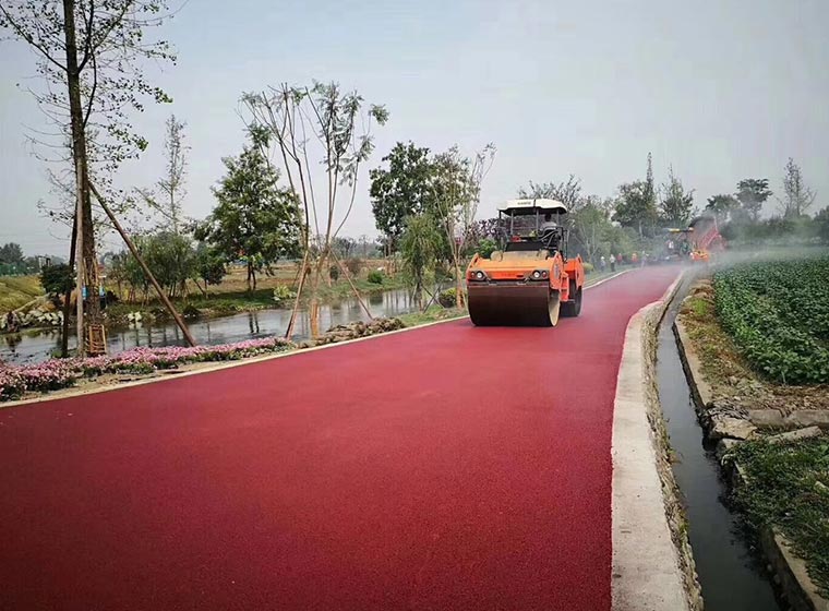 أثناء الإنتاج ، قم بخلط رابط الإسفلت عديم اللون مع صبغة إسفلتية ملونة بنسبة 3٪ وإجمالي 91٪ في خزان الإسفلت ، ثم قم بإعداد خليط الإسفلت الملون الساخن. يجب أن يتم تحميل المنتج النهائي في شاحنة إلى موقع البناء ، سمك الرصف المقترح هو 3 سم. الرصيف الملون لديه قوة جيدة ، أداء جيد لدرجة الحرارة العالية والمنخفضة ، لون جميل ورائع ، يدوم طويلاً للغاية.